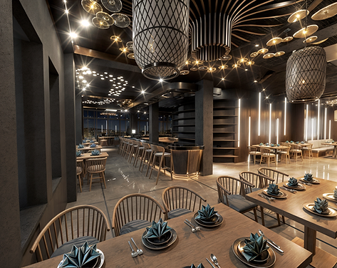Located in the heart of Skopje, this restaurant concept is a masterclass in atmospheric and elegant commercial design. The project explores the dramatic interplay between deep, dark tones and sophisticated linear lighting, creating a prestigious yet intimate dining environment. Rich wood textures are seamlessly integrated with modern bar elements to define a luxury cafe-restaurant aesthetic. AG Interiors focused on conceptualizing a space that tells a story through shadows and illumination, providing high-quality architectural and interior design visualizations that capture every detail of this prestigious hospitality experience.